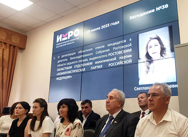 Сегодня, 28 июля, на заседании Избирательной комиссии Ростовской области было принято решение о регистрации областного списка кандидатов в депутаты Законодательного Собрания Ростовской области седьмого созыва, выдвинутого РОСТОВСКИМ ОБЛАСТНЫМ ОТДЕЛЕНИЕМ политической партии «КОММУНИСТИЧЕСКАЯ ПАРТИЯ РОССИЙСКОЙ ФЕДЕРАЦИИ».