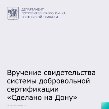 Вручение свидетельства добровольной сертификации «Сделано на Дону»