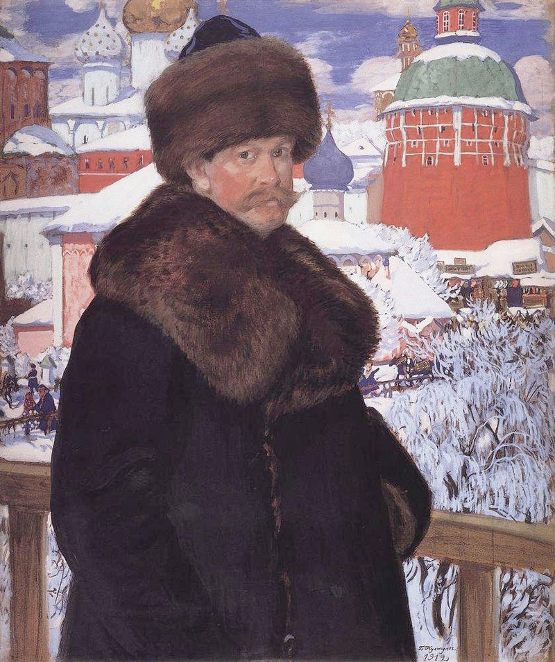 Как и Андрей Рябушкин до него, Кустодиев сосредоточился на изображении русских провинциальных гуляний. Но в картины купеческого сословия Кустодиев добавил новую нотку сатиры. Используя яркие красные и синие тона русского народного творчества, с удовольствием рисовал пухлых купеческих жен в досуге. Один из самых ярких образов – «Купчиха за чаем» (1918 год), где пышная фигура красавицы доминирует над чайным столом и окружающим пространством своей массой, с самодовольным выражением лица. Она такая же круглая и сочная, как фрукты на столе. Это произведение, как и многие другие, обладает восточным богатством колорита, которое Кустодиев видел частью астраханского наследия.
