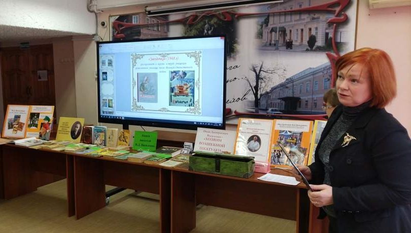 Заведующая детской библиотекой имени И.Д. Василенко Любовь Бойченко поведала не только о литературном творчестве писателя, но и представила книжную выставку, и продемонстрировала отрывки из художественных фильмов, снятых по произведениям этого автора.