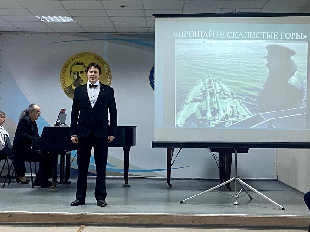 Студенты Таганрогского института имени А.П. Чехова подготовили музыкально-литературную композицию, исполнив легендарные песни военных и послевоенных лет. Мероприятие было посвящено дате, которую мы будем отмечать в 2025 году – 80-летию Победы в Великой Отечественной войне.