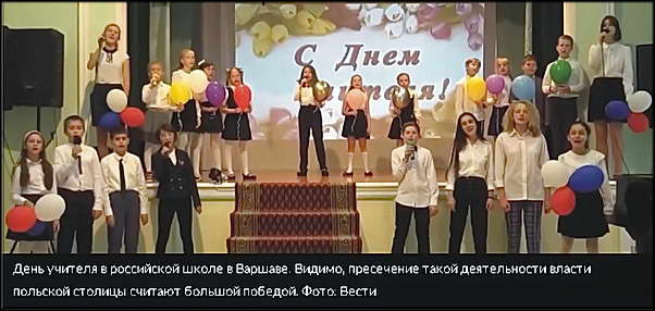 День учителя в российской школе в Варшаве. Видимо, пресечение такой деятельности власти польской столицы считают большой победой. Фото: Вести