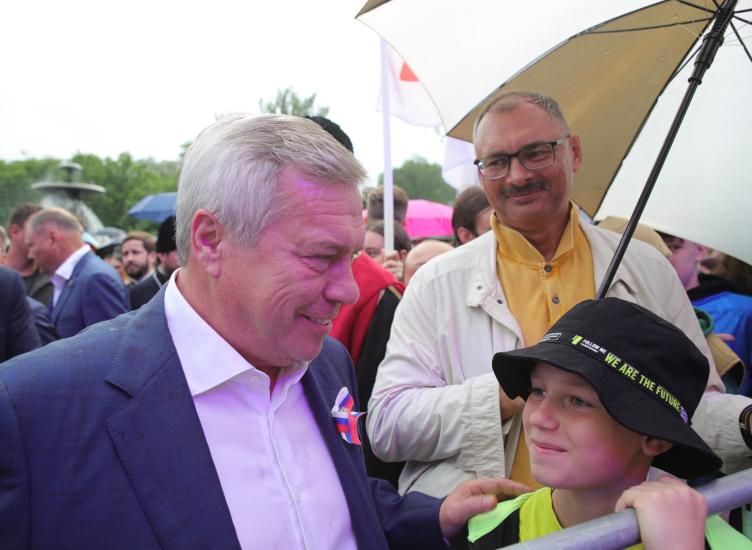 «У нас впереди много хороших дел, и мы будем делать их вместе, вместе с нашим президентом. Уверен, что победа будет за нами, потому что мы едины», - обратился к пришедшим на площадь жителям и гостям донской столицы Василий Голубев.