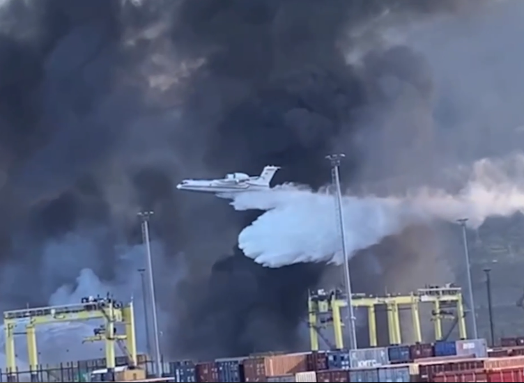 Ростовская область, 10 февраля 2023. DON24.RU. Самолет-амфибия из Ростовской области принял участие в тушении пожара на территории населенного пункта и морского порта в Турции.