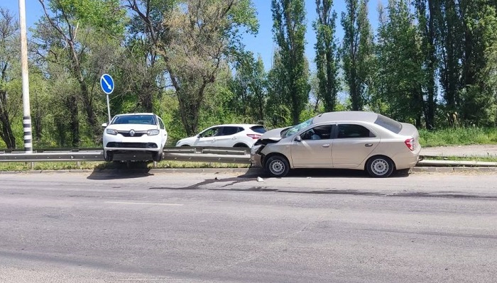 Первый автомобиль от удара налетел на дорожный барьер.
