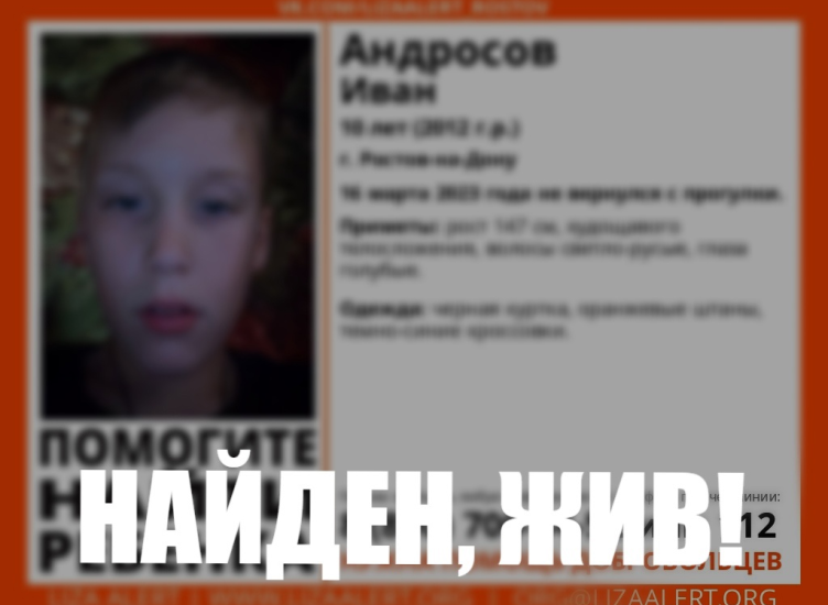 В Ростове-на-Дону нашли живым пропавшего 10-летнего мальчика, который не вернулся домой с прогулки
