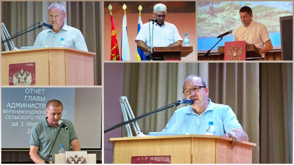 В своих докладах главы администраций поселений рассказали об исполнении своих полномочий и достигнутых показателях работы администраций, акцентировали внимание на принятых мерах по благоустройству территорий поселений, ремонту дорог, освещенности улиц, водоснабжению населенных пунктов, пожарной безопасности и многим другим вопросам. Также были озвучены дальнейшие планы и задачи на второе полугодие 2023 года.