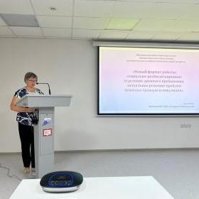 Директор таганрогского Центра социального обслуживания Инна Иванченко в своем докладе презентовала опыт работы отделения дневного пребывания, открытого на базе ЦСО в апреле 2022 года.