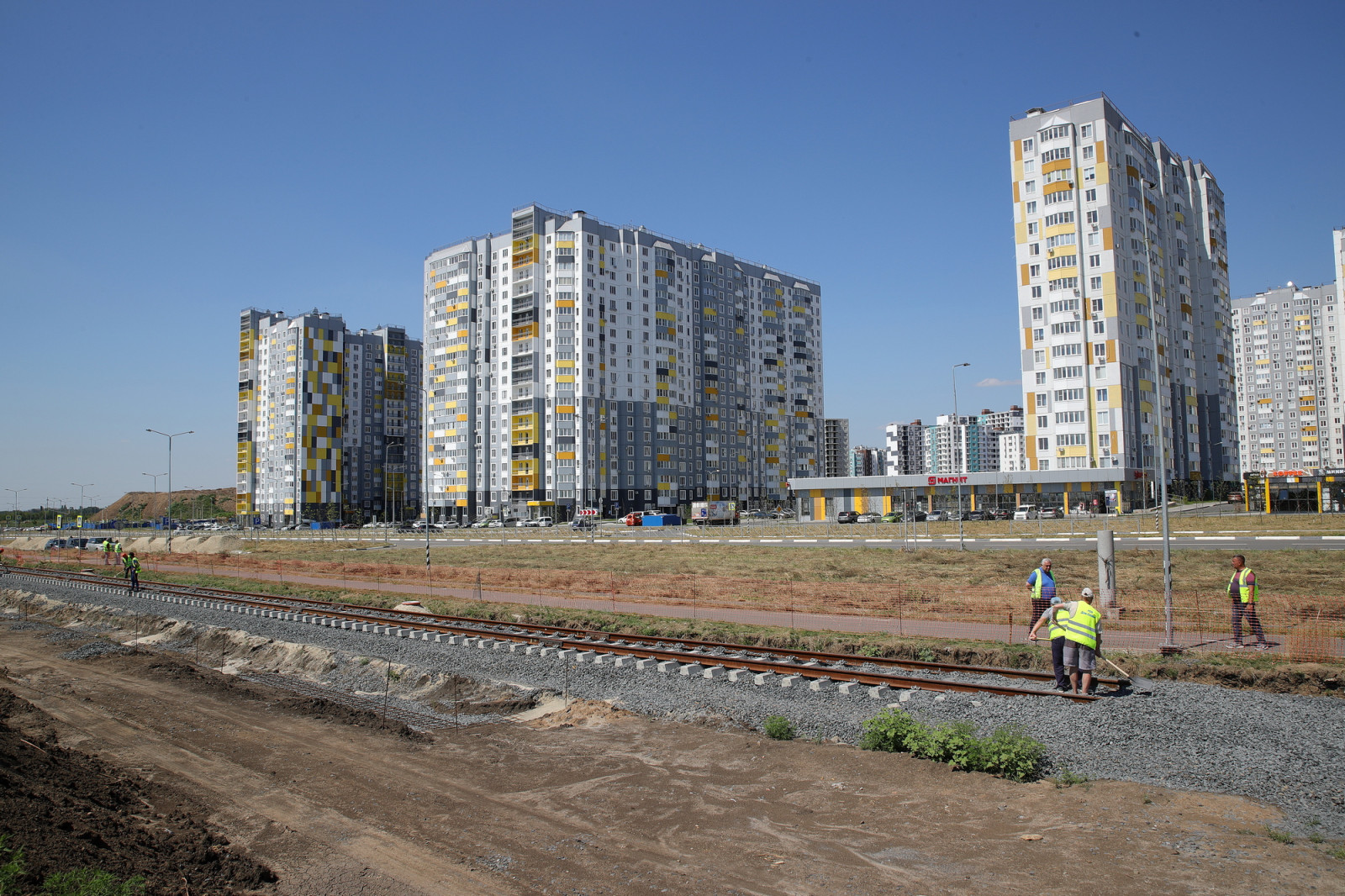 «На данный момент выполнено устройство 5 км рельсошпальной решетки одиночных путей и установлено 144 опоры контактной сети. Также завершена укладка рельсошпальной решетки на участках Солженицына и Ткачева, а также Еременко и Жданова, и ведется переустройство инженерных сетей», — рассказал Тимур Мамишев .