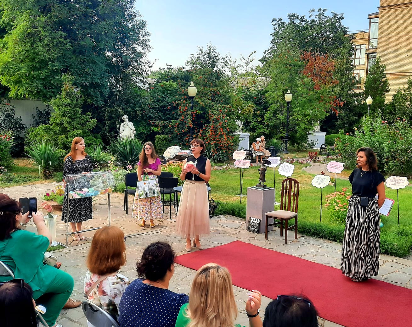 «Милые дамы и галантные господа! Сегодня благодаря вам в музее было светло от раскрытых, празднично взволнованных зонтиков и элегантно поданных труакаров — в честь дня рождения всеобщей любимицы, незабвенной Фаины Георгиевны Раневской! Благодарим вас за счастье нежной и веселой встречи в этот чудный вечер», — с такими теплыми словами обратились сотрудники Таганрогского художественного музея (ТХМ) ко всем гостям вечера.