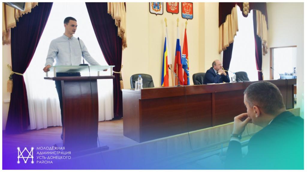 После освещения актуальной повестки представителями основных направлений глава администрации Усть-Донецкого района Виктор Михайлович Гуснай предоставил слово лидеру молодёжной администрации Алексею Лепетюхину, который обозначил основные цели этой структуры: самореализация молодёжи, коммуникация между молодёжью и разными сферами общества, развитие инфраструктуры района.