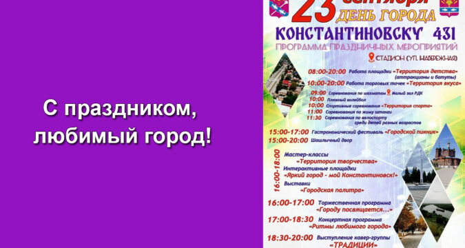 23 сентября в Константиновске пройдет ряд культурно-развлекательных мероприятий в честь Дня города!