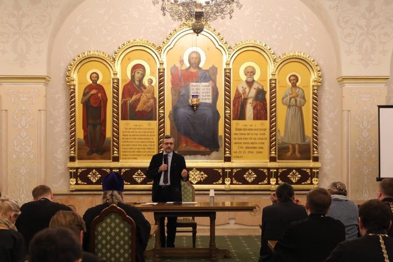 В начале своего выступления В. Р. Легойда обратил внимание на особенности текущего момента, указав на то, что в условиях масштабной трансформации общества особенно важной и востребованной становится творческая инициатива служителей Церкви по ряду направлений церковно-государственного и церковно-общественного взаимодействия.
