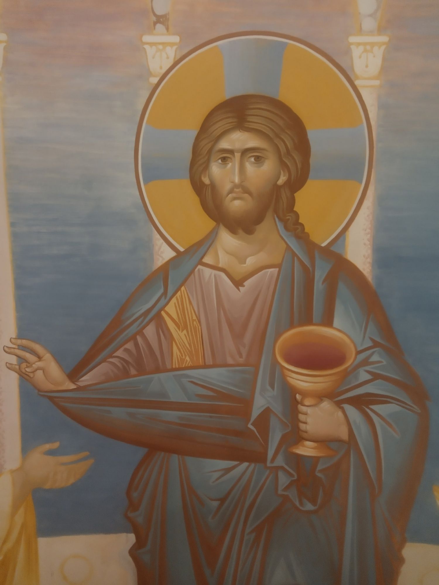 Продолжается роспись в нашем храме Сорока мучеников Севастийских. Иконописец Алёшин Анатолий Валерьевич пишет Евхаристию в алтаре храма.