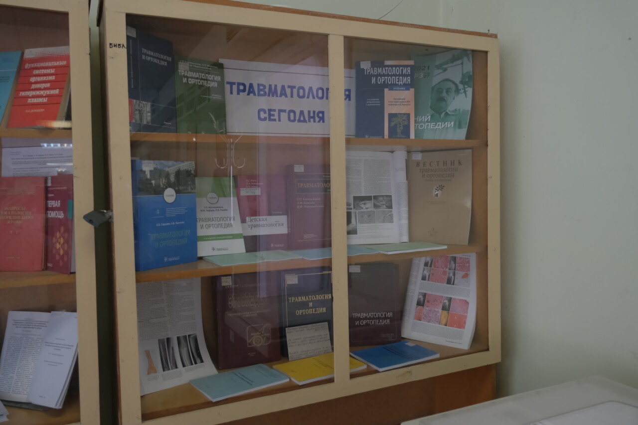 Книги и журналы из фонда библиотеки знакомят с современными технологиями лечения и реабилитации в травматологии. Экспозиция находится в фойе библиотеки на 2 этаже УЛК.
