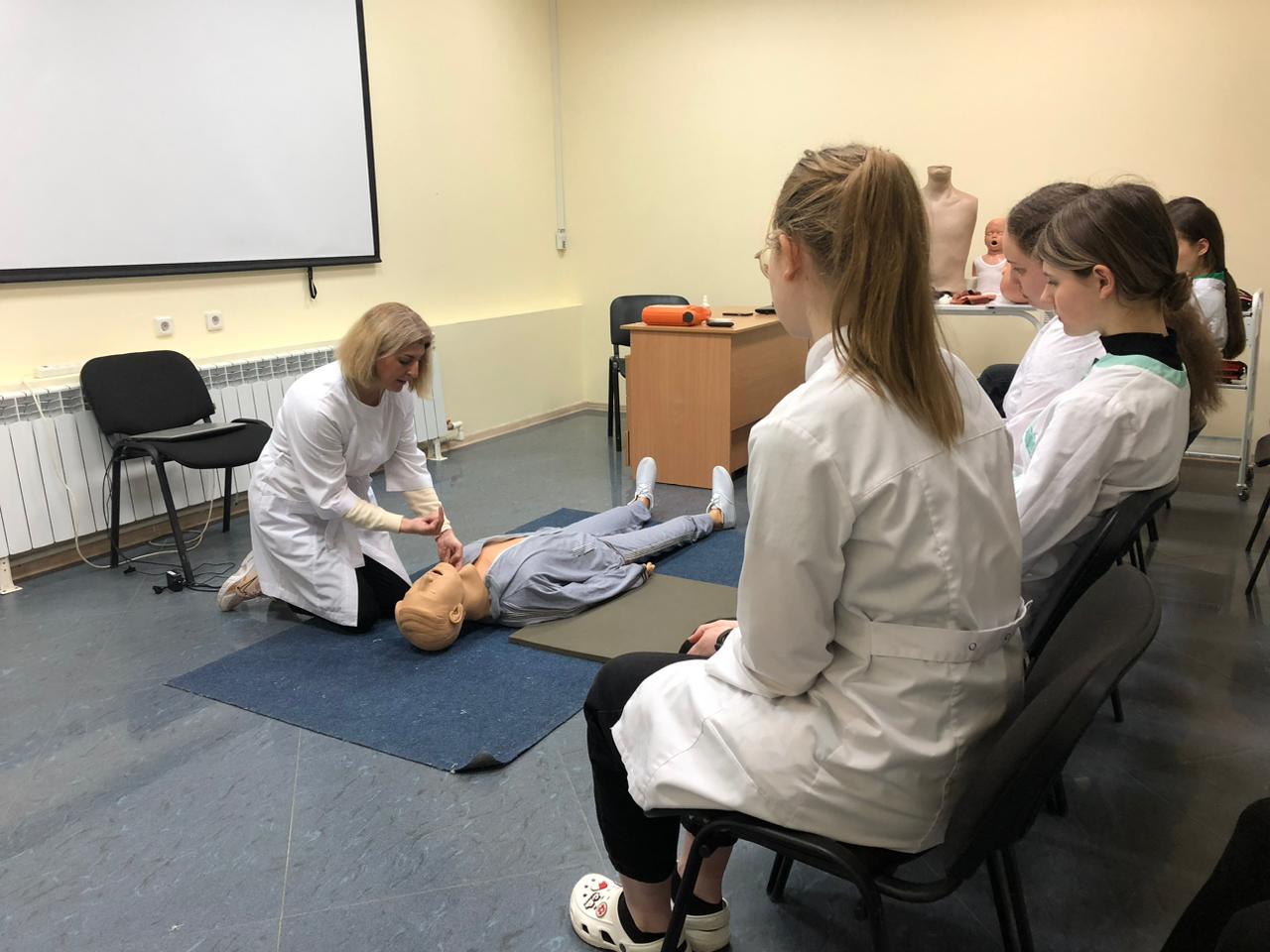 Самый важный раздел подготовки – практические занятия — проходили в симуляционном центре, где преподаватель — к.м.н., Ирина Николаевна Пятакова — научила студентов правильно оценивать состояние пострадавшего; проводить базовую сердечно-легочную реанимацию в рамках оказания первой помощи; особенностям остановки различных видов кровотечений и переломов, навыкам оказания первой медицинской помощи при попадании инородного тела в верхние дыхательные пути.