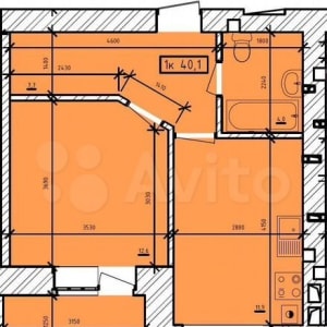 - Общая площадь: 40.1 м²